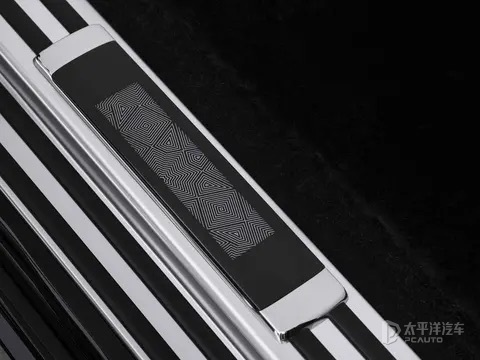 内饰设计的重点在于横贯中控台的“艺境藏珍”画廊。该区域由黑木与黑色玻利瓦尔木精密镶拼而成,同样呼应了马什拉比亚设计元素。发光迎宾踏板上刻有机舱盖雕刻纹样的横截面细节。