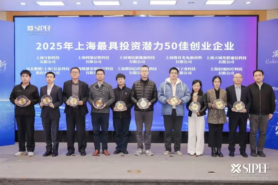 在此之前,上海推荐的12家企业入围“创客中国”全国创业组300强,21家企业入围“创客中国”全国企业组500强,3家企业跻身全国企业组50强榜单,图灵在11月下旬全国总决赛荣获一等奖,霖鼎、佰翊获二等奖。10月中旬,“2025年上海最具投资潜力50佳创业企业”评选正式启动,百家企业接受了来自金浦、德同资本、上海自贸区基金、火山石投资等机构的10位知名投资人组成专家评委团的背靠背盲选评选活动,并特别邀请了专业征信机构对企业及主要创始人诚信情况做了尽职调查,最终评选产生了“2025年上海最具投资潜力50佳创业企业”榜单。