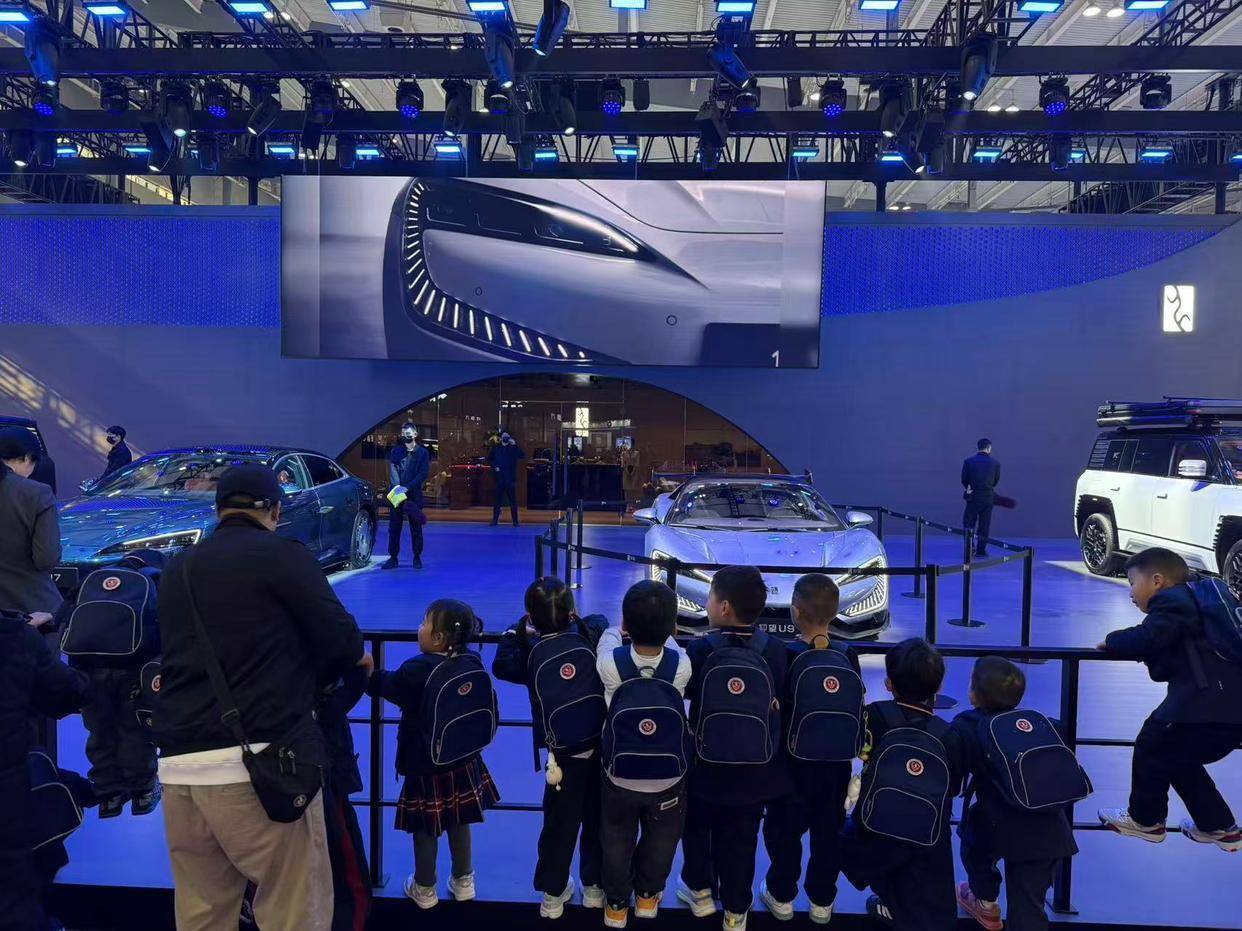 在仰望汽车展台,“小馆长”们还可以一起来了解什么是真正的“中国速度”。仰望U9系列中的顶级车型,已经成为全球最快量产超跑,也是世界最知名赛道之一纽伯格林北环的电车纪录创造者。不久前还低调地拿下了国内多条赛道的量产车圈速纪录,这样一款由中国车企、中国工程师打造的极致速度机器,有怎样的独特魅力?“小馆长”们可以亲自来体验。